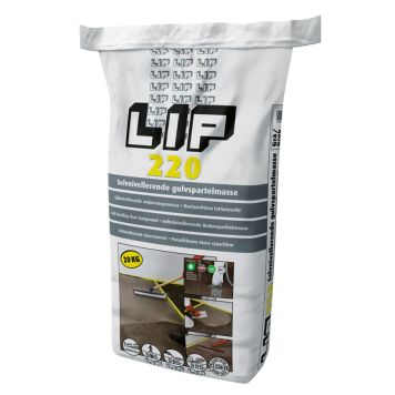 Är en cementbaserad, plastförstärkt och självnivellerande avjämningsmassa. Används till utjämning och spackling av betong, natursten, kakel, klinker och ingjutning av värmekablar m.m. Kan också användas till stabilisering av träbjälklag enligt BBVs branchregler. Vid spackling där risk för tillskjutande fukt förekommer, används LIP 250. Den är även lämplig att ytbehandla med epoxifärg. LIP 220 är avsedd för inomhus bruk.