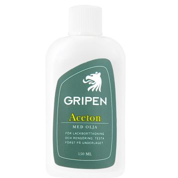 Aceton med olja för lackborttagning och rengöring. Testa på underlaget innan användning.