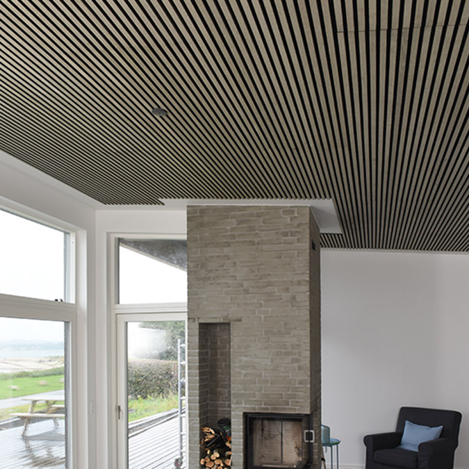 Med akustikpanel får du både en vacker vägg eller ett vackert tak med en ljuddämpande yta som ger dig bättre akustik i rummet. Uttrycket blir varmt och inneklimatet behagligt.