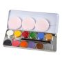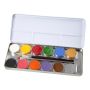 Upptäck de fantastiska vattenbaserade ansiktsfärgerna som är enkla att använda där du endast behöver blöta ner färgen med lite vatten och applicera med svamp eller pensel. Färgerna kan blandas för att skapa unika nyanser och effekter och de stryks på smidigt med pensel eller svamp. När festen är över tvättas sminket enkelt bort med tvål och vatten. Ansiktsfärgerna är perfekta för alla tillfällen från maskerad och teater till barnkalas och temafester. Med detta smink kan du låta din kreativitet flöda och skapa fantastiska ansiktsmålningar som imponerar. Lätt att använda, lätt att tvätta bort!