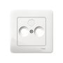 Centrumplattor för antennuttag R/TV/XX. Utförd med utbrytningsmöjlighet av ett tredje hål för satellit- eller multimediauttag. För infällt montage i apparatdosa c/c 60 mm eller utanpåliggande med dosa 35 mm.