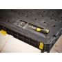 Detta är en robust arbetsbänk från Stanley som är idealisk för alla hantverkare och hobbyarbetare som behöver en mångsidig, bärbar arbetsyta med stor lastkapacitet. Bänkskivan ger full tving-täckning, vilket gör att tvingar kan användas i alla lägen och för alla applikationer. Den har en platsbesparande, ihopfällbar bänkskiva för kompakt förvaring på plats i garaget eller verkstaden. Inbyggd tillbehörsbricka för säker och bekväm förvaring av handverktyg, smådelar och tillbehör när de inte används. Automatisk och hållbar låsmekanism för bänkskivan för ökad säkerhet. Kan användas tillsammans med sågbänk Stanley ihopfällbar för att tillåta större material att sågas och bearbetas på ett säkert sätt. Medföljande ändlås för att göra det möjligt att sätta ihop fler fällbara arbetsbänkar från Stanley för att förlänga arbetsytan. Detta arbetsbord har även praktiska handtag för enkel transport. Sågbänk medföljer ej.