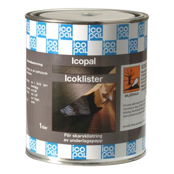 Icoklister används för skarvklistring av spikad underlagstäckning och för annan provisorisk tätning av underlagstäckning. Påföres med grov borste. Åtgång ca 1 l/ 15 lpm överlägg. Burk om 1liter.
