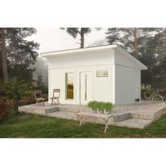 Njuta 20 -1 levereras som byggsats med färdiga väggsektioner och gavelspetsar. Råspont och underlagspapp till tak samt golvspånskivor till golv ingår. En traditionell modell på 20 kvm med sadeltak som passar in i de flesta miljöer. Attefallshuset är en utmärkt komplementbostad eller gäststuga för dig som behöver mer utrymme för gäster, när familjen växer eller för din fritidssyssla.
