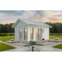 Njuta 20-4 levereras som byggsats med färdiga väggsektioner och gavelspetsar. Råspont och underlagspapp till tak samt golvspånskivor till golv ingår. En traditionell modell på 20 kvm med sadeltak som passar in i de flesta miljöer. Stugan är en utmärkt komplementbostad eller gäststuga för dig som behöver mer utrymme för gäster, när familjen växer eller för din fritidssyssla.