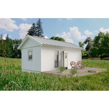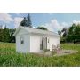 Njuta 25-1 levereras som byggsats med färdiga väggsektioner och gavelspetsar. Råspont och underlagspapp till tak samt golvspånskivor till golv ingår. Stugan på 25 kvadrat rymmer mer än man kan tro med smarta och flexibla lösningar. Inred som med sovrum, allrum med pentry och litet badrum – perfekt som ett generationsboende eller som gästhus/gäststuga.