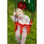 Babysitsen i den fantastiskt röda färgen är stabil och utformad för att ge extra stöd och säkerhet för de mindre barnen när de gungar. Sitsen har en stabil sittplats samt en sele och bygel som håller barnet på plats för en säker gungning. CE-märkt och godkänd enligt Lekstandard EN-71 för lek i den privata trädgården.