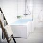 Ett litet och praktiskt badkar med rejält duschutrymme. Perfekt för dig med litet utrymme som både vill kunna bada och duscha. Går att få i höger- eller vänsterutförande. Kan även kompletteras med skärmvägg.