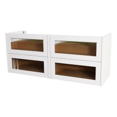 Oavsett storlek på badrummet erbjuder Camargue något som passar. Serien finns i flera bredder, från kompakta möbler för gästtoaletten till större dubbellösningar för familjebadrummet. Välj mellan vägghängda modeller som frigör golvyta eller möbler med ben för en mer traditionell känsla. Alla möbler är designade med förvaring i fokus – så att du får plats med allt du behöver i vardagen.