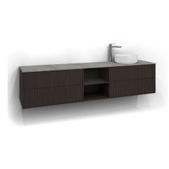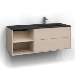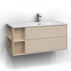 Till skillnad från färdiga möbelpaket ger Epos dig möjligheten att sätta ihop möbeln efter behov. Välj mellan olika bredder på kommoder, komplettera med en bänkskiva i det material som passar bäst och addera ett ovanpåliggande tvättställ för en modern och elegant känsla. Tack vare flexibiliteten fungerar Epos lika bra i små badrum som i stora familjelösningar.