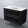 Vid val av porslin så har du möjlighet att välja mellan ovanpåliggande, underlimmat eller klassiskt porslin i två olika utföranden. Lådor och lådindelare är i svartbetsat trä och det ingår ett EASY-CLEAN vattenlås för enkel rengöring ovanifrån. All belysning är i modern LED-teknik.