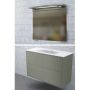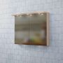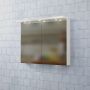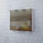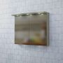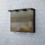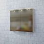 Spegelskåpens insida följer utsidans kulör och har flyttbara hyllor i glas. Spegelluckor har nackspegling och dämpare för mjukstängande effekt.