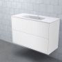 Vid val av porslin så har du möjlighet att välja mellan två olika höjder på framkanter som är antigen 15 eller 70 mm höga. Lådor och lådindelare är i svartbetsat trä och det ingår ett EASY-CLEAN vattenlås för enkel rengöring ovanifrån. All belysning är i modern LED-teknik.
