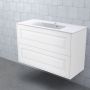 Badrumsmöbeln levereras färdigmonterad och transportförpackad från fabrik.