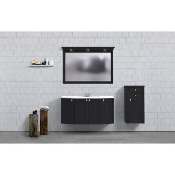Med genomtänkta och välarbetade detaljer är Valhall den unika och perfekta lösning för ditt badrum. Den tandade krönlisten och pelarna stilfullt ramar in möbeln för att återge en unik karaktär i designen. Valhall finns i flera bredder, med luckor eller kombinerad med utdragslådor.