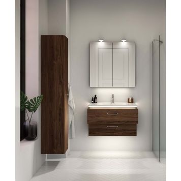 Gör ditt badrum komplett och välj även tillhörande spegelskåp. Du kan välja mellan integererad belysning eller med ljusstyrning där du kan köpa till LED-belysning. Spegelskåp med ljusstyrning och belysning som tillval har ljuskontroll med minne om senaste inställningarna såsom, slå på-och av-funktion, steglös dimmer och färgtemperaturkontroll av ditt ljus (2100-6500K) med 4 ljusinställningar. Tillgängliga lampor som tillval: Jupiter, Stratos och Venus.