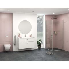 Detta badrumspaket kommer med flera snygga alternativ. Med raka och rena linjer kan möbeln ge olika uttryck beroende på val av underskåp och spegel. Med ytterligare val av LED-belysning, blandare, sidoförvaring och badkar kan man skapa ett vackert badrum efter egen smak.
