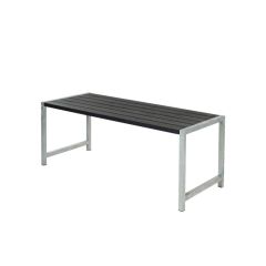 Bänk komplett med 1 ryggstöd, plankor och stödben i metall. Bänken är tryckimpregnerad och grundmålad i svart färg förutom stödbenen