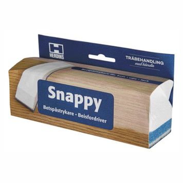 Denna betspåstrykare kan enkelt delas för att anpassa storleken till olika behov. Lägg ut betsen flödigt på underlaget och använd sedan Snappy betspåstrykare för att jämna ut betsen. Kan även användas till applicering av lack och oljor, m.m. Fukta borsten lätt och torka av löst borstmaterial innan användning.