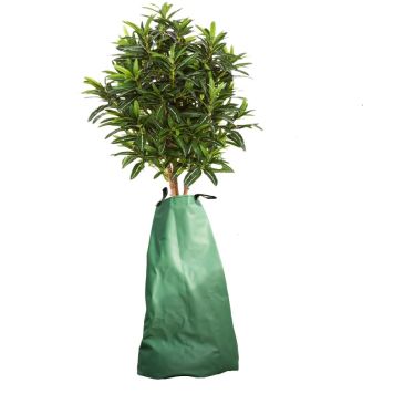 Bevattningspåsen används från maj till oktober, den första och andra växtsäsongen efter plantering. Gäller också träd som planteras på hösten. Vik båda sidorna av påsen runt stammen och lås påsen. Fyll påsen med ¼ vatten - lyft sedan de två banden- och fyll upp med vatten.