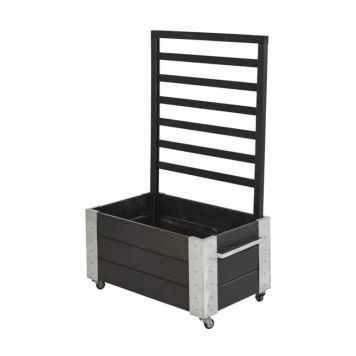 Blomlådan är tryckimpregnerat och grundmålat i svart färg. Hörnen är gjort av stål. Levereras med två handtag, fyra hjul och bultar för montering.