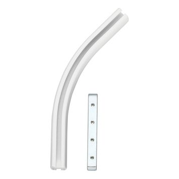Eftersom skenan är liksidig så kan du använda samma böj oavsett om du vill ha den till höger eller vänster. Tänk på att hjälpa upp skenan vid skarven med extra hållare så att skenan blir fortsatt stabil och inte sviktar.