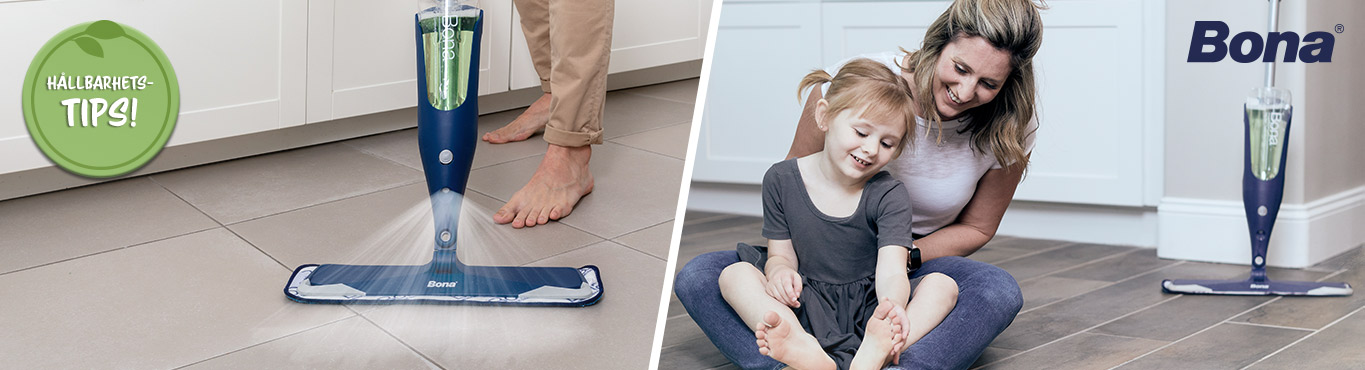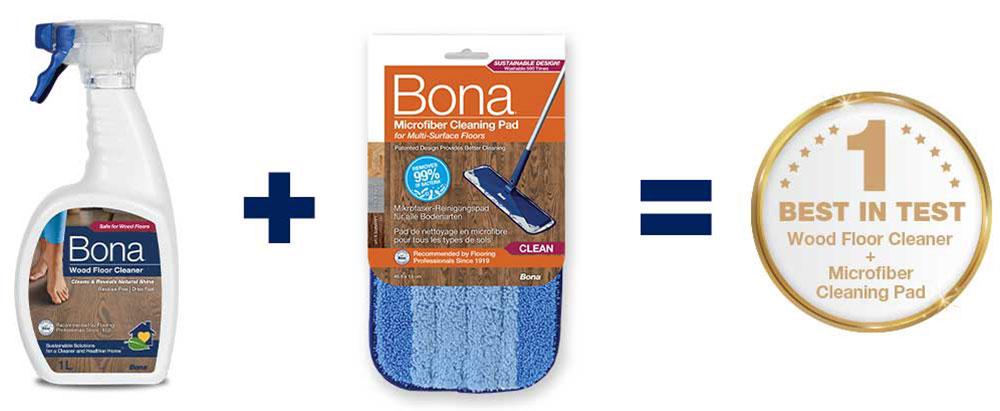 *Avlägsnar 99% av E. coli och Listeria från trägolv och LVT-golv när du använder Bona Mikrofibermopp för våttorkning tillsammans