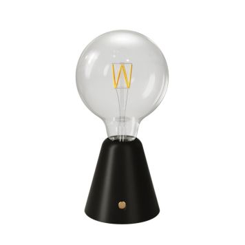 Med en konformad lampfot i färgat trä är den här praktiska lampan idealisk om du letar efter en charmig och tilltalande belysning som kan användas var som helst, utan att behöva ett eluttag. Lampan är perfekt att ta med sig ut på den inglasade balkongen för mysigt häng med familj och vänner. Den bärbara lampan drivs av ett uppladdningsbart batteri och har en globformad ljuskälla. Den fina lampfoten är försedd med en knapp som låter dig dimra belysningen i tre steg. Den genomsnittliga batteritiden är 12 timmar med ett 3350 mAh-batteri. Lampan laddas enkelt via sin USB-c-port. Batteriladdare medföljer ej.