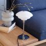 Denna bordslampa kombinerar tidlös design med funktionalitet. Med en bas i krom och justerbar glasmontering erbjuder den både stil och flexibilitet. Strömbrytaren är bekvämt placerad på sladden för enkel användning. Den svarta textilsladden är 1,6 meter lång, vilket ger dig frihet att placera lampan där du önskar. Passar perfekt för E14-lampor upp till 40 watt, vilket ger ett behagligt ljus för alla rum. Lampan är tillverkad i glas och metall, vilket ger en robust och elegant känsla. Ljuskälla medföljer ej.