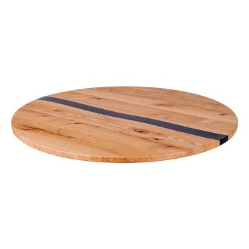 Denna runda bordsskiva är en harmonisk kombination av ek och polyuretan vilket ger den en unik och modern design. Bordsskivan är tillverkad av massivt ekträ och det miljövänliga alternativet polyuretan istället för epoxiharts. Den svarta polyuretanen skapar en snygg kontrast mot det naturliga träet och har en ytbehandling som är täckt med en naturlig vaxolja vilket skapar en varm och mjuk känsla. Det eleganta Schweiziskt avrundade kanterna ger en sofistikerad look som gör det perfekt för användning som bordsskiva eller soffbord.