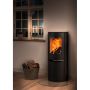 Namnet signalerar framtid och betonar, att kaminen kan fungera med båda pellets och vanlig ved. Ved til...
