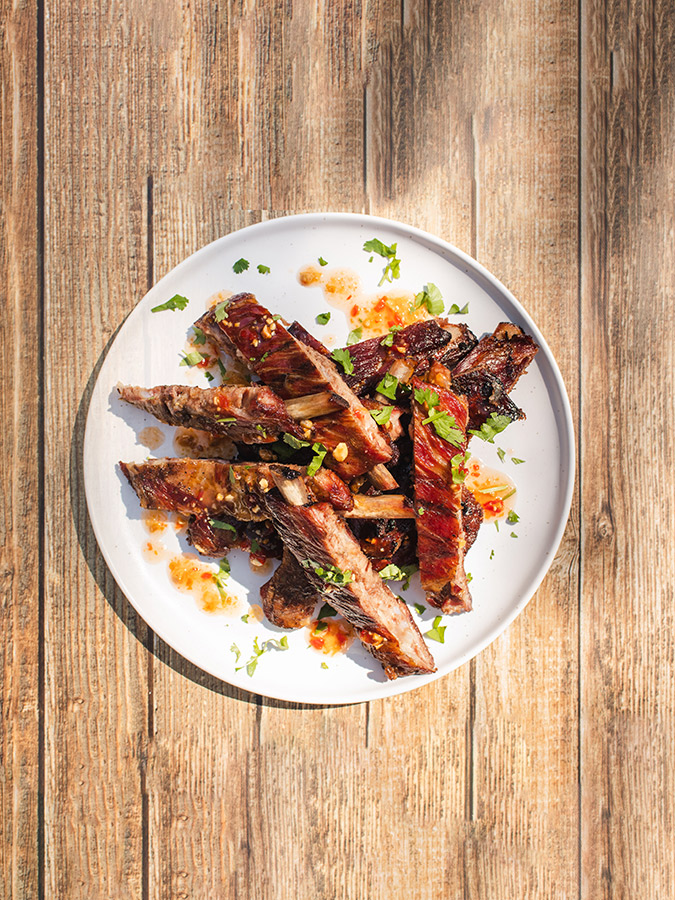 • Blanda samman en marinad av ingredienserna från lönnsirap till kanel och marinera revbensspjällen över natten.