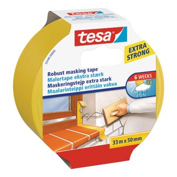 tesa® Maskeringstejp Extra Stark är en mycket motståndskraftig maskeringstejp för gips utvecklad för ett brett spektrum av både inomhus- och utomhusbruk . Tejpen är tillverkad av slitstark PVC och är väder- och vattenbeständig. Använd den vid noggrann maskering för att uppnå rena och professionella resultat av målning. Tejpen fungerarar också utmärkt som en universell skyddstejp för utomhusrenovering, såsom putsning av väggar eller pooler. För extra bekvämlighet är den lätt att riva av för hand och erbjuder väder och UV-resistens i upp till sex veckor.