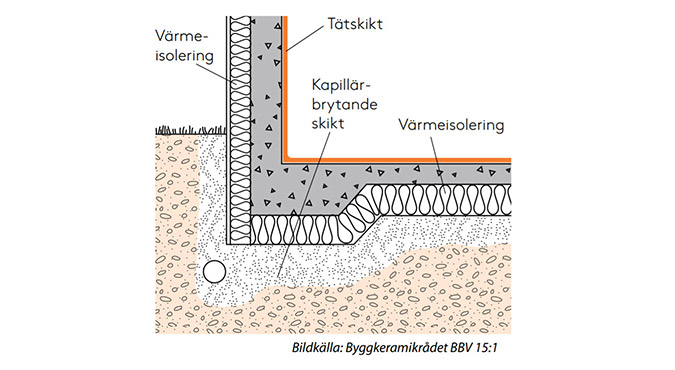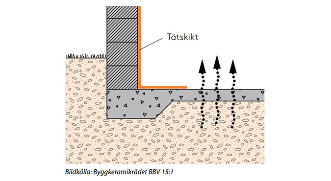 När golv- och väggytor står i direkt markkontakt och där inträngning av vatten och fukt kan förekomma begränsas applicering av tätskiktet till golv- och väggytor med kraftig vattenbelastning till exempel duschplats. På övriga ytor appliceras normalt inget tätskikt.