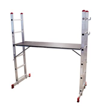 Denna hobbyställning i aluminium erbjuder en mångsidig lösning för både hemmafixare och proffs. Med sin justerbara plattform kan du enkelt anpassa höjden upp till 995 millimeter, vilket ger dig den flexibilitet du behöver för olika arbetsuppgifter. Ställningsgavlarna kan användas som en utskjutstege med en maximal längd på 2750 millimeter eller som en kombistege på 1620 millimeter. Plattformen mäter 500x1470 millimeter och klarar en maxbelastning på 150 kilo, vilket gör den både robust och säker. Perfekt för allt från målning till reparationer, denna ställning är ett oumbärligt verktyg i din verktygssamling!