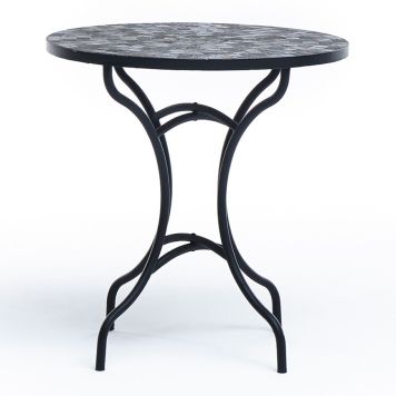 Fint litet café- eller balkongbord, perfekt för en kopp kaffe i solen eller för att sträckläsa sommarens romaner. Bordet får extra charm och karaktär tack vare den vackra mosaikbelagda bordsskivan.