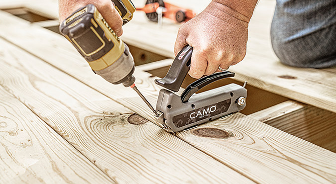 CAMO DRIVE går att använda till 3 olika infästningsmetoder – ta bara din favoritskruvdragare, CAMO Clips, bandad dold eller klassisk trallskruv och börja skruva ditt tralldäck.
