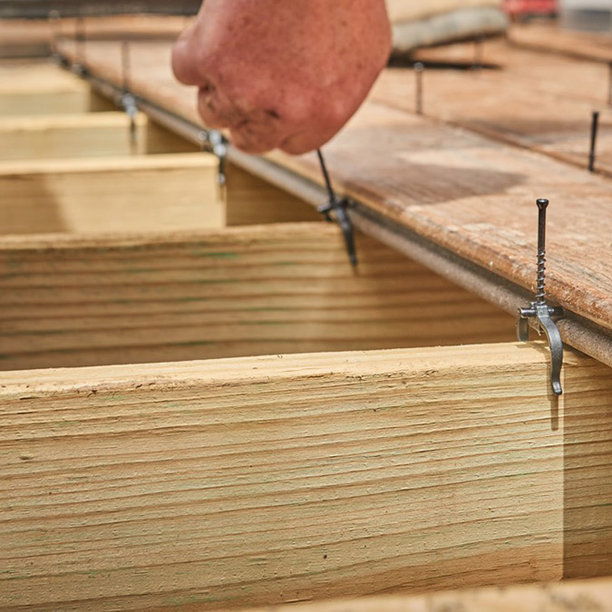 Går att använda till 3 olika infästningsmetoder; bandad trallskruv för både dolt montage och klassisk toppskruvning, och Clips för dold infästning av spårfräst komposit och trädäck.