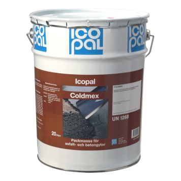 Icopal Coldmex är en asfaltmassa med stenmaterial som används för snabblagning av mindre skador och sättningar i asfalt- och betongytor. Massan är sammansatt av bitumen och stenmaterial och ger en mycket stark yta som kan beträdas omgående. Burk om 20 liter.