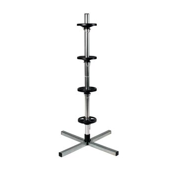 Tillverkad av robust metall och däcket får stabilt stöd. Med däckhyllorna gjorda av plast undviker du repor på fälgarna. Stället klarar upp till 225mm breda däck och passar därför för flertalet däcktyper.
