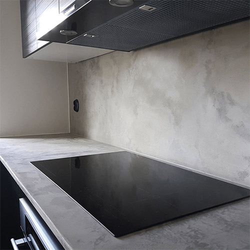 När primern har torkat är det dags att lägga microcementen. Detta görs genom att applicera det i tunt skikt med en spackelspade eller roller. Resultatet blir en slät och fogfri yta med en modern känsla.