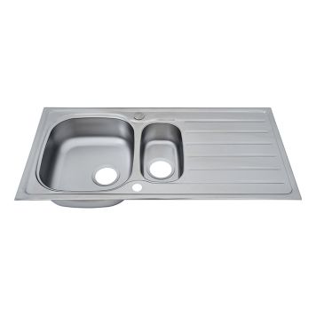Dallas inbyggnadsvask från märket Respekta är ett modernt och funktionellt handfat med linjär design. Den är utrustad med ett handfat, ett avlopp som sluttar mot bassängen och en liten överbliven bassäng för förvaring av grönsaker eller diskmedel. Den inbyggda diskbänken av rostfritt stål är extremt robust och hygienisk. Det är korrosions- och värmebeständigt samt okänsligt för vanliga hushållspåfrestningar. Med rätt skötsel och rengöring kommer denna inbyggda diskbänk att hålla hela livet. Diskbänken är vändbar och kan monteras med vänster eller höger skål. OBS! Täckbrickor för förborrade blandarhål medföljer ej.