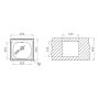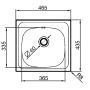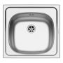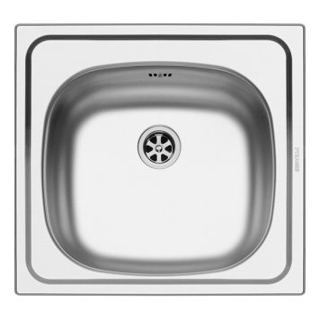 E 33 är tillverkad av slät rostfritt stål för insats. Dimensionerna är 465 x 435 mm och skålens mått är 365 x 335 x 150 mm. Denna skål behöver en minsta basenhet på 40 cm och är utrustad med en 60 mm (1,5 ") kontakt med överflöde. E33 har inga kranhål.