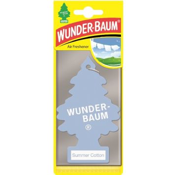 En parfymerad bit papp formad som en gran som sprider härlig doft i bilen. En favorit i över 60 år! För att doften ska hålla längre, öppna påsen och dra ut cirka 1 cm/vecka. Undvik kontakt med alla ytor, häng upp wunderbaumen i backspegeln.