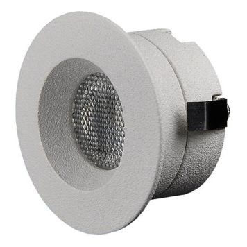 Liten och kompakt 1,2W minidownlight med försänkt lins vilket utgör optimal avbländning! Denna downlight kan med fördel kan installeras i fönstersmygar och skåp. En utmärkt armatur vid montage i fasta fönster från golv till tak eller panoramafönster. Lampan ger ett ljus på 100lm med 20° spridning i ett härligt varmt sken med färgtemperatur på 3000K.