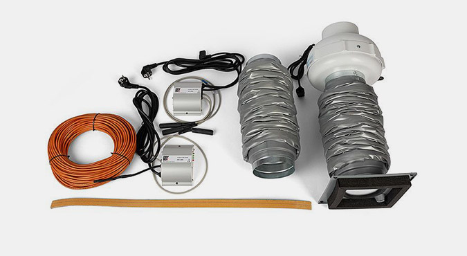 - En fläkt installeras tillsammans med den termiska slingan. Fläkten används för att vädra in torr luft utifrån när det är möjligt, vilket ytterligare bidrar till att sänka fuktnivån på vinden.