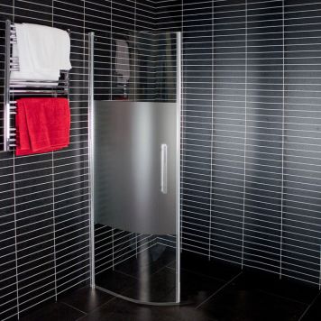 Skapa elegans i ditt badrum med runda duschdörrar i halvfrostat glas!