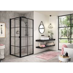 Trendig duschlösning som ger ditt badrum ett extra lyft. Frame kan monteras i tre olika utföranden, hörn, fast vägg samt nisch. Välj mellan två olika storlekar 80 eller 90 cm. Mattsvarta spröjs och profiler i aluminium ger en lyxig känsla.