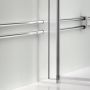 Dörren kommer med 6 mm härdat säkerhetsglas, samt smarta stigargångjärn som lyfter dörren 5 mm vid öppning. Den ställbara väggprofilen på 25 mm ger en rak dusch även vid lutande väggar, samt ger utrymme för håltagning för utanpåliggande rör.