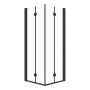 Klassisk duschlösning som kombinerar enkelhet och stil med två eleganta vikdörrar i 6 millmeter härdat, klart säkerhetsglas med magnetlister som säkerställer att dörrarna hålls stängda under användning. Som standard levereras duschdörren med ett hål i glaset som handtag.